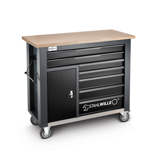 Stahlwille 85010621, Banc de lucru mobil WB 621, 7 sertare cu glisare completa, compartiment lateral, blat din lemn, inchidere centralizata, doar bancul