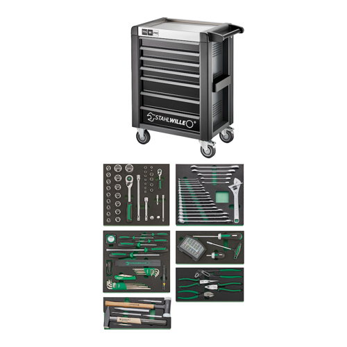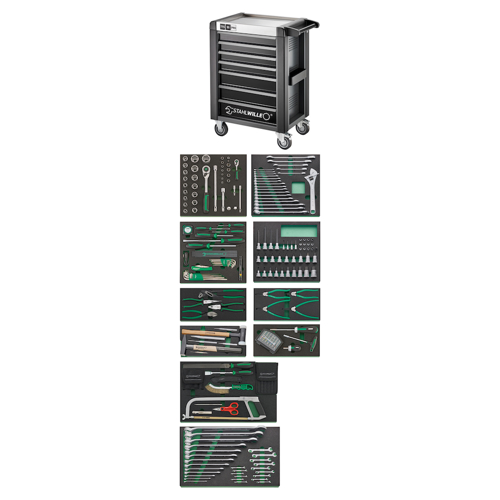 Stahlwille 98830178, Carucior pentru atelier 93/157QR, 6 sertare cu glisiere, blocare centrala si 157 unelte