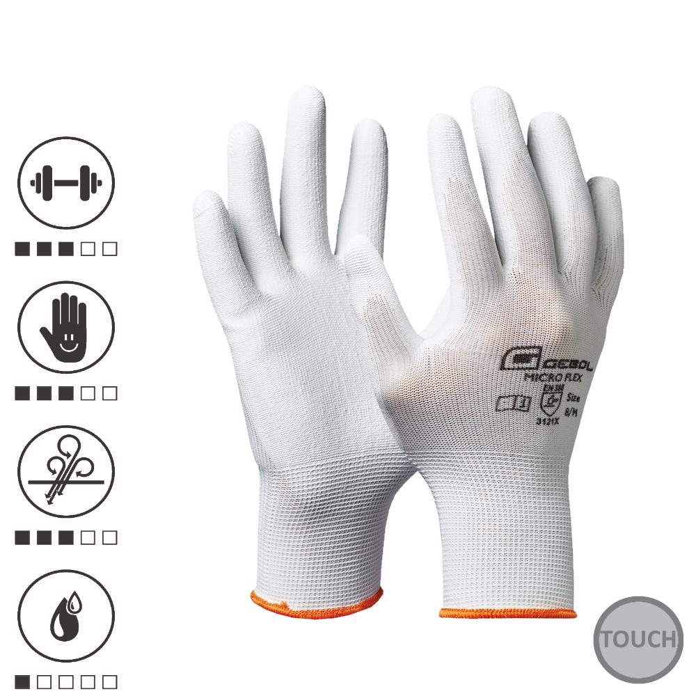 Gebol 709243, Mănuși de protecție Nano Flex White, din poliester, acoperire subțire din poliuretan, uz profesional, mărimea 10/XL