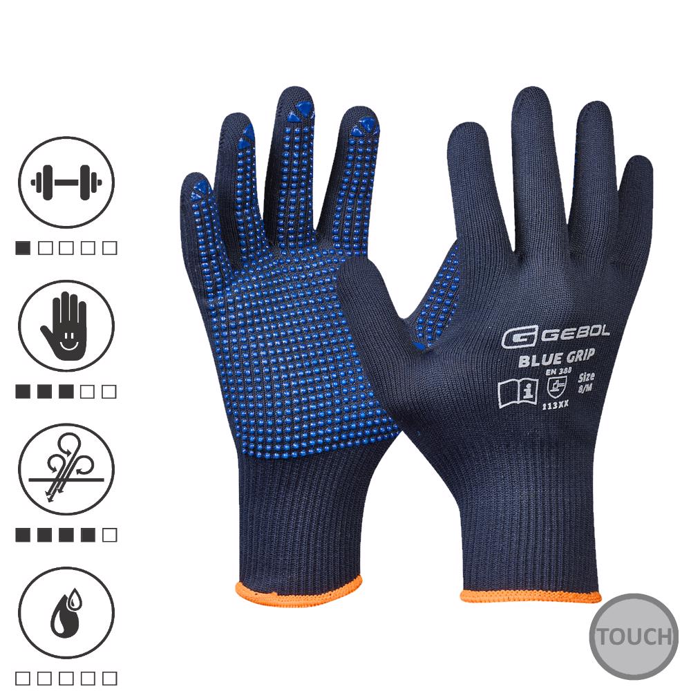 Gebol 709428_09, Mănuși de protecție Blue Grip, din nylon, poliacrilic și bumbac, acoperire cu puncte din PVC, uz profesional, mărimea 9/L