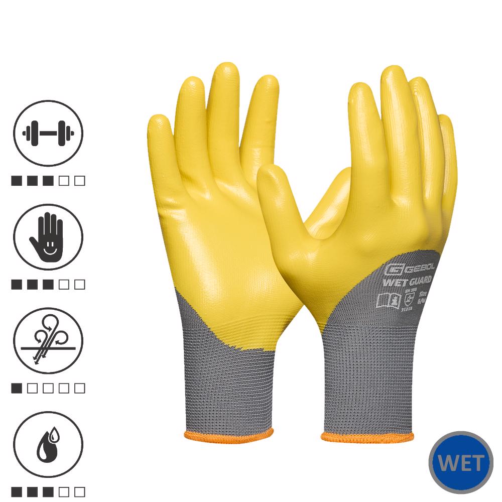 Gebol EP729514_10, Mănuși de protecție Wet Guard Yellow, din poliester, acoperire cu spumă de nitril, rezistente la ulei și apă, uz profesional, mărimea 10/XL