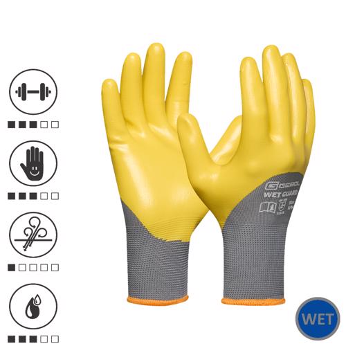 Gebol EP729514_09, Manusi de protectie Wet Guard Yellow, din poliester, acoperire cu spuma de nitril, rezistente la ulei si apa, uz profesional, marimea 9/L
